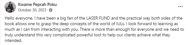 Unlike the standard IMO training that merely scratches the surface of IUL mechanics, the LASER Fund training goes into the nuanced art of policy design and implementation.